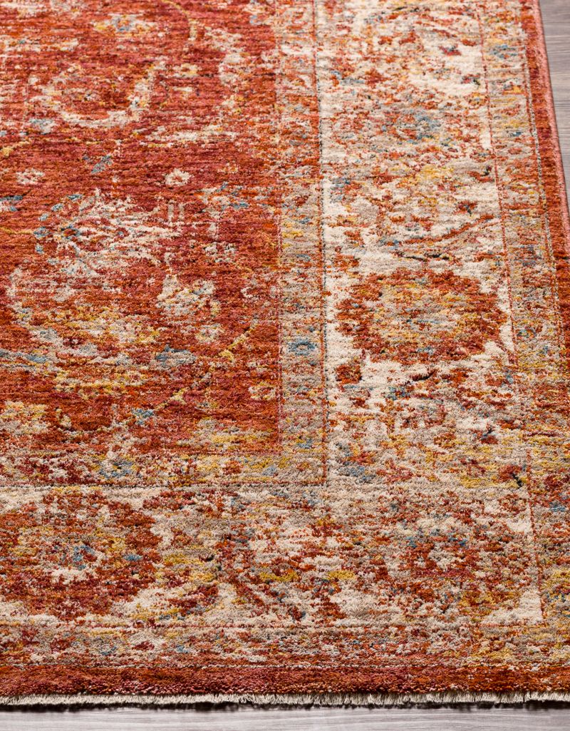 Surya Mirabel Mbe-2307This Mirabel area rug is the perfect way to add style and comfort to any living space. It features a beautiful Updated Traditional design made of durable Polyester, machine-woven in Turkey for quality that will last. The medium pile provides cushiony softness underfoot, while the fringe adds a subtle touch of elegance. The Mirabel is also great for high traffic areas, as it's designed to stay looking beautiful for years! For easy care, just spot clean with a mild detergent. For extra protection, we recommend using it with a rug pad (sold separately).