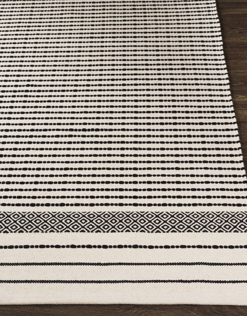 Bring a touch of rustic charm to your home with the Osasuna Area Rug. This stunning handwoven cotton rug is perfect for adding warmth and texture to any room. With its no-pile construction, it will provide you with a beautiful floor covering without taking up too much space. Made in India, this area rug is sure to make an impact in any room of your home. For best results, we recommend using a rug pad for added comfort and longevity of the product. Spot clean only for easy maintenance.